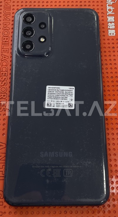 - Model etiketi arxa hissədə mövcuddur (SM-A235F/DSN, 128GB).